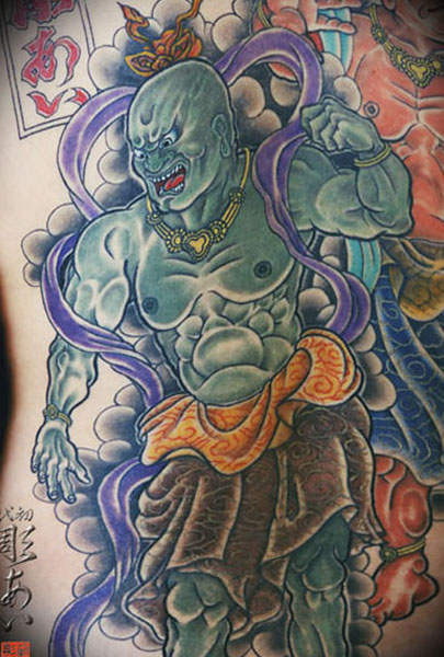 阿形・吽形 一般には金剛力士、または仁王(二王)とも呼ばれ、手に金剛杵を持ち筋骨隆々の半裸の忿怒形で仏法を守護し、 外敵の侵入を防ぐ役を担い寺門の左右に安置されている。 開口尊を「阿形」といい仏門に帰依する人々の真如に通じる門を開き、 閉口尊の「吽形」は悪趣の門を閉じ全ての諸悪の侵入を遮断するといわれている。
