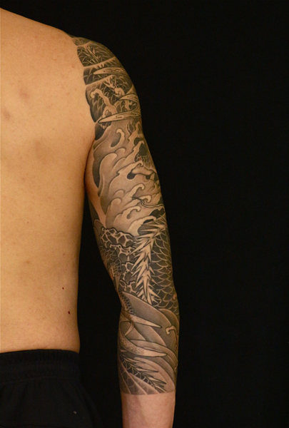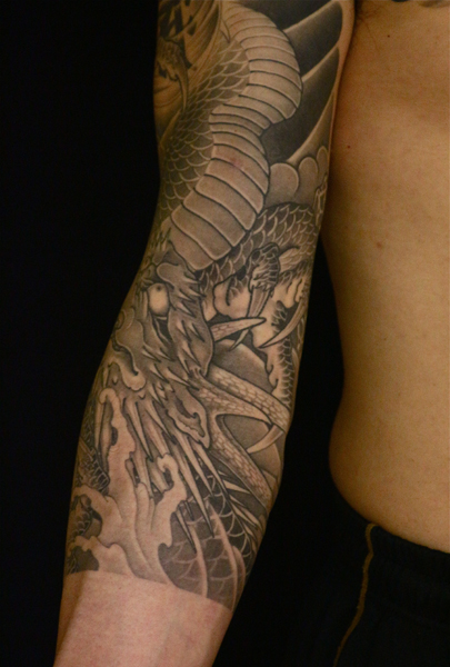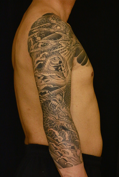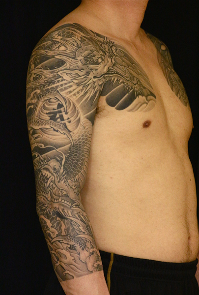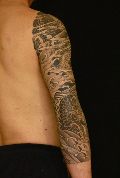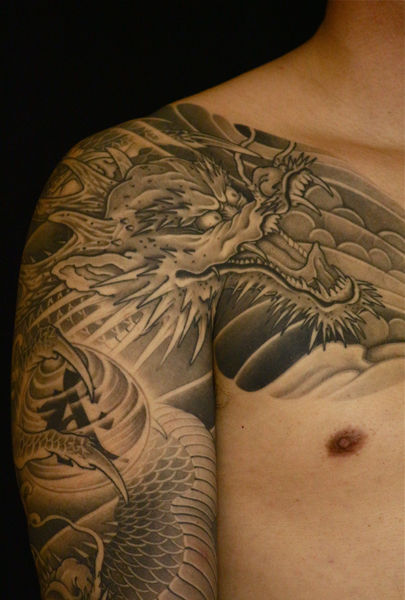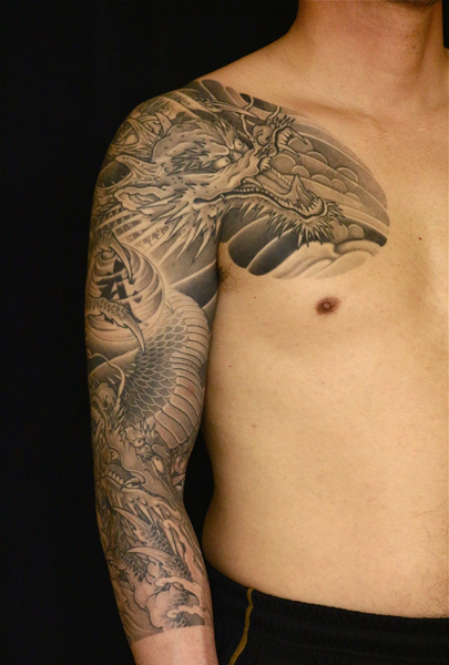 日本伝統刺青のなかでも絶大な人気を誇る「龍」は古代中国を起源とする想像上の霊獣である。