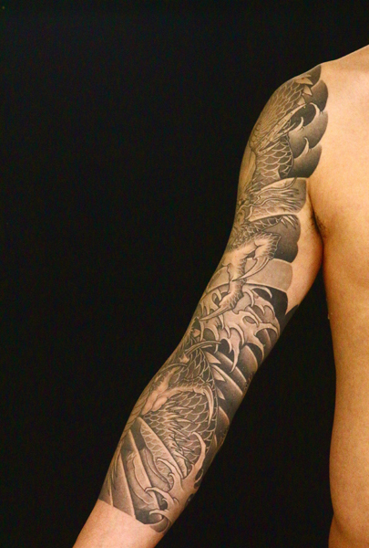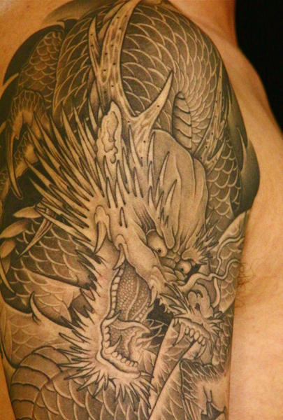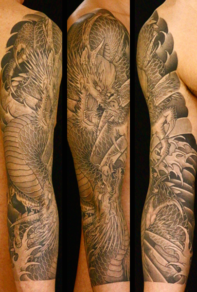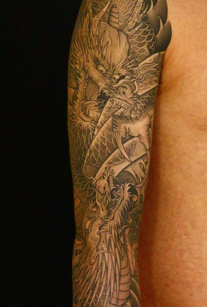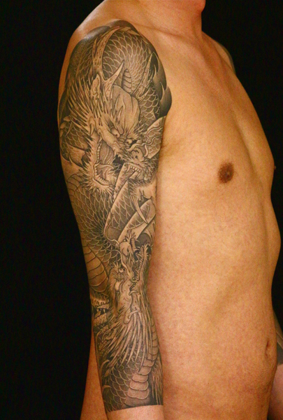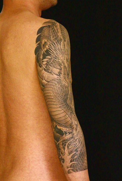 日本伝統刺青のなかでも絶大な人気を誇る「龍」は古代中国を起源とする想像上の霊獣である。
