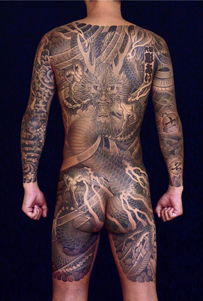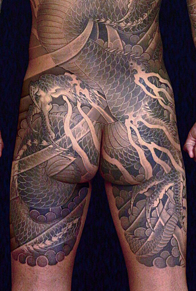 日本伝統刺青のなかでも絶大な人気を誇る「龍」は古代中国を起源とする想像上の霊獣である。