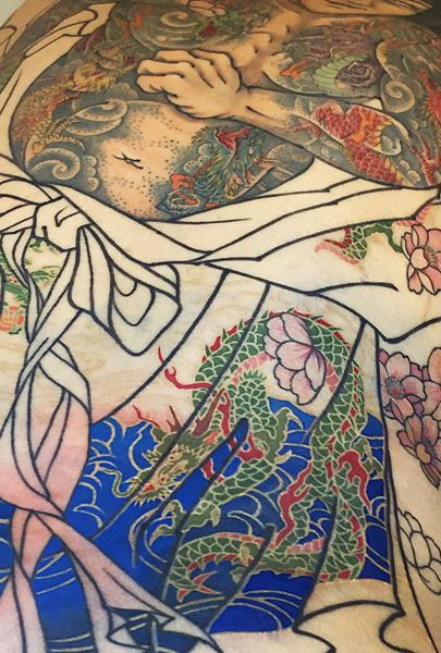 筋彫りと同時に胸の部分のぼかしをいれました。