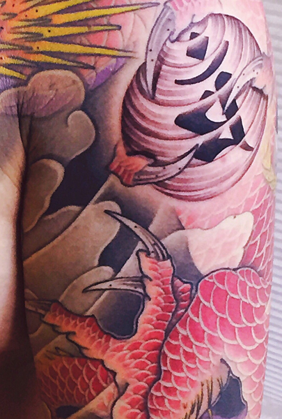 日本伝統刺青のなかでも絶大な人気を誇る「赤龍」は古代中国を起源とする想像上の霊獣である。