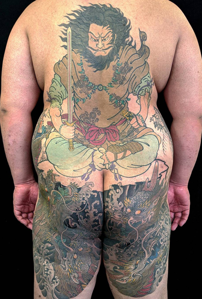 須佐之男命(スサノオノミコト) スサノオ(スサノオノミコト、歴史的仮名遣:スサノヲ)は、日本神話に登場する神である。 『古事記』では建速須佐之男命(たけはやすさのおのみこと)、 速須佐之男命、須佐之男命、「日本書紀」では素戔男尊、素戔嗚尊等、須佐乃袁尊、 「出雲国風土記」では神須佐能袁命(かむすさのおのみこと)、須佐能乎命などと表記する。 comment:製作途中。あと2匹の龍(大蛇)を両肩に追加していきます。